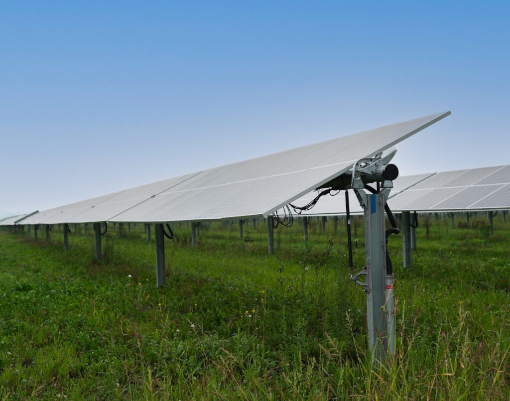 The photovoltaic panels used in the Pinesap Solar Project will be surrounded by prairie grasses and pollinators compatible with grazing and beekeeping. Rows will be separated by 18-26 feet, wide enough to drive a vehicle between.